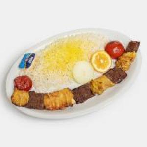 یک سیخ جوجه کباب همراه یک سیخ کوبیده