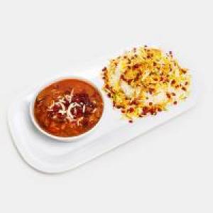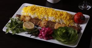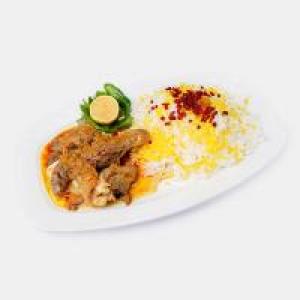 سینه مرغ،برنج زعفرانی،سس مخصوص،ماست موسیر