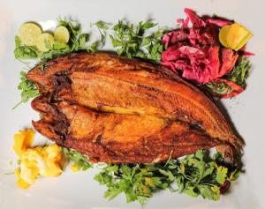 700 گرم ماهی سرخ شده،برنج ،دورچین