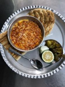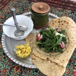 (گوشت گرم بدون چربی، برنج، لپه، الو، گردو) +نان و سبزی خوردن