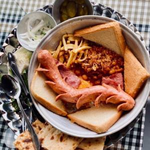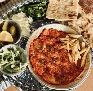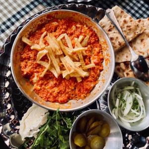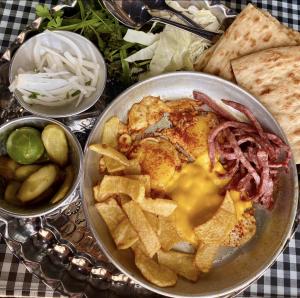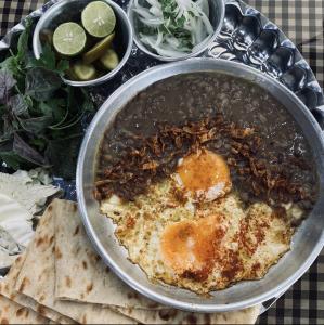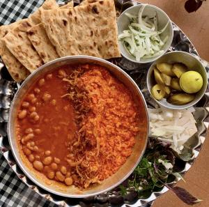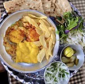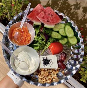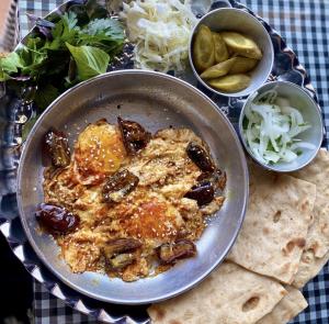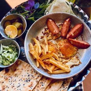 پنیر + گردو + خیار + گوجه + خامه + مربا