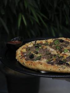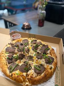 180 گرم گوشت گوساله، پیاز کاراملی، فلفل هالوپینو، کاهو فرانسوی، گوجه، خیارشور