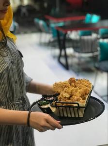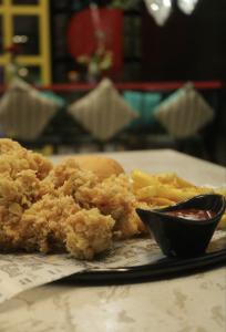 180 گرم گوشت گوساله، سس قارچ، کاهو فرانسوی، گوجه، خیارشور