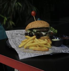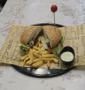 180 گرم گوشت گوساله، کاهو فرانسوی، گوجه، خیارشور