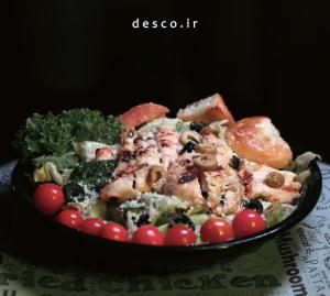 سالاد سزار به همراه 3عدد فیله مرغ گریل شده و سس اضافه سزار مخصوص