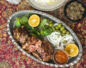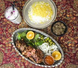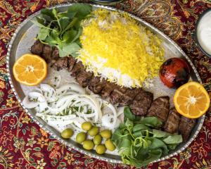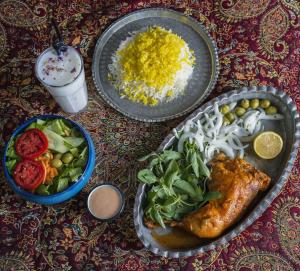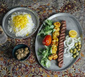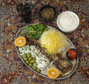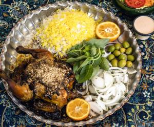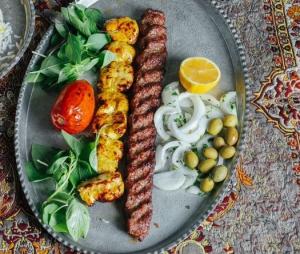 250گرم جوجه کباب/150گرم کوبیده و خورشت گیلانی/برنج ایرانی