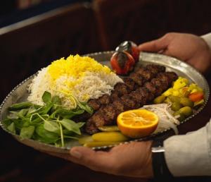 برنج مرغوب ایرانی یک سیخ کباب برگ گوسفندی 300گرمی/یک سیخ کوبیده150گرمی