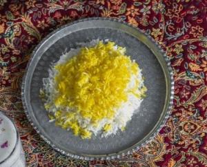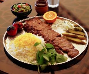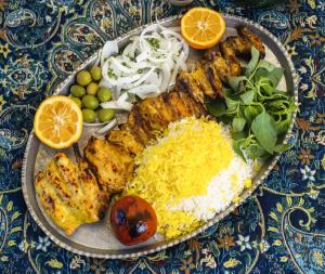 برنج مرغوب ایرانی/ یک سیخ کوبیده150گرمی/یک سیخ جوجه کباب زعفرانی250گرمی