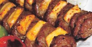 یک سیخ برگ 200 گ و یک سیخ جوجه 250 گ و یک سیخ کوبیده 120 گ - برنج ایرانی - روغن تکنفره کرمانشاهی -دورچین