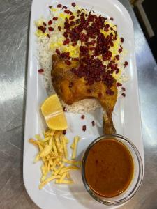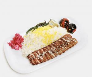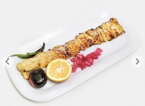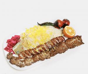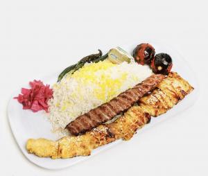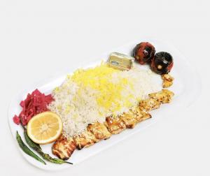 ۳ سیخ کوبیده، ۱ سیخ چنجه، ۱ سیخ جوجه مخصوص، خوراک نثار، خوراک مرغ، ۶ ظرف برنج