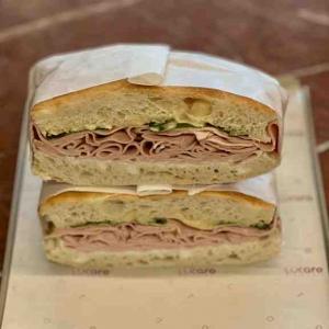 نان فوکاچا ، ژامبون لیونر ،خردل عسل ،پنیر لبنه،ریحون ایتالیایی، روغن زیتون فرابکر