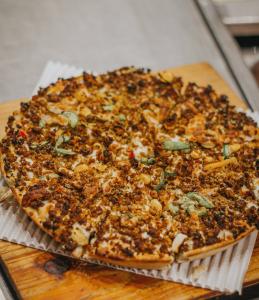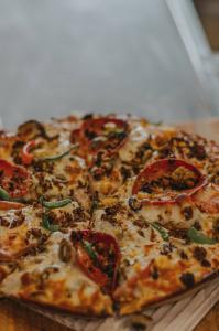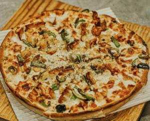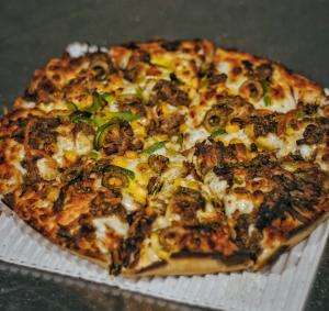 گوشت چرخ کرده، قارچ بلنچ ،گودا ،پنیر مخصوص،زیتون