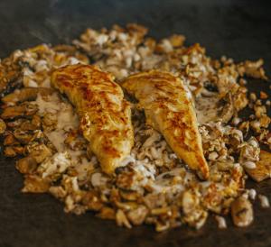 فیله مرغ گریل، پنیر گودا، سس قارچ