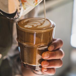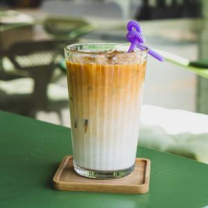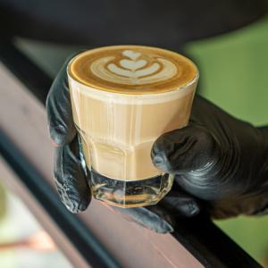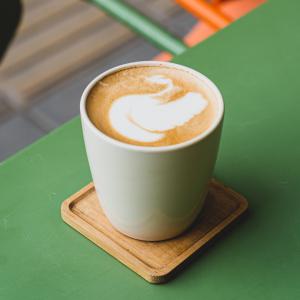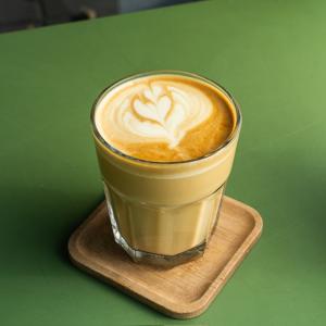 ترکیب مساوی یک شات قهوه ۲۰% روبوستا، ۸۰% عربیکا و شیر گرم، همراه با یک عدد شکلات، یک عدد کوکی