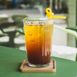 یک شات قهوه ۲۰% روبوستا، ۸۰% عربیکا، دم شده با دستگاه قهوه ساز، همراه یک عدد کوکی