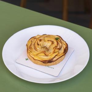 یک شات قهوه ۱۰۰% عربیکا، یک لکه فوم شیر، سیروپ کارامل، وانیل، همراه با یک عدد شکلات، یک عدد کوکی