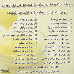 درمان ناباروری،فعال کنندهی ایمنی و آنتیباکتریال قوی تعدیل سیستم ایمنی و ضد سرطان حفاظت از پوست و کلاژنسازی ضد دیابت و جلوگیری از زخم معده تسهیل کننده تمایز سلولهای مغز ضد روماتیسم و تنظیم متابولیسم بدن، روش نگهداری داخل فریزر، نحوه مصرف یا مخلوط به عسل روزانه یک قاشق غذاخوری، یا ناشتا به اندازه نخود زیر زبان استفاده کنید