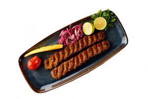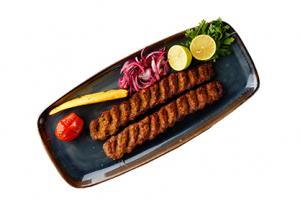 ۲سیخ ۱50 گرمی،نان،گوجه،فلفل تند،پیاز و جعفری