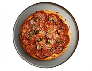 خمیر خانگی،سس مارینارا،پپرونی، هالوپینو،موتزارلا