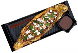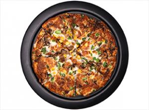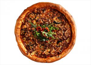 خمیر خانگی،سس مارینارا،قارچ،فیله گوساله،پیاز کبابی، موتزارلا،بلوچیز