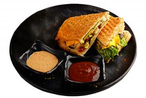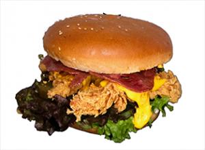 فیله مرغ سوخاری , پنیر گودا , کاهو , خیارشور , سس مخصوص