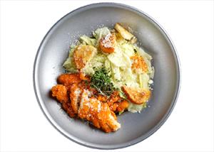 سینه مرغ گریل , پنه , سس آلفردو , ریحان ایتالیایی , پارمزان