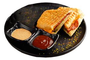 نان چارکی،شنسل مرغ،خامه،قارچ،کاهو،پنیر
