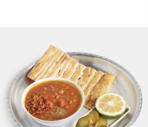 تخم مرغ ، رب ، نارنج یا لیموی تازه -خیارشور - تزیین پیاز داغ و کنجد،نصف بربری یا سنگک