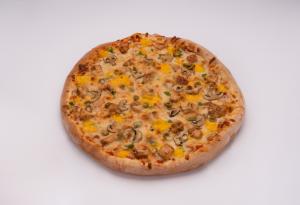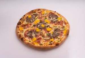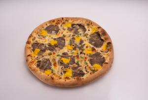 خمیر مخصوص - سس مارینارا - سس سیر- فیله گوساله اسالیس شده - قارچ - زیتون - فلفل دلمه