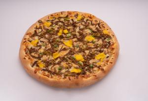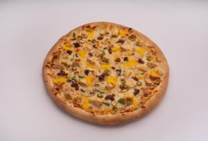 خمیر مخصوص - سس مارینارا - فیله گوساله - بیکن مخلوط- پپرونی - پنیر گودا - مرغ تندوری گریل- زیتون - قارچ