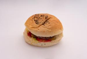 برگر دست ساز - دونر کباب مخلوط گوشت و مرغ - خیارشور - کاهو - گوجه فرنگی