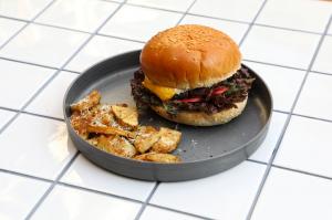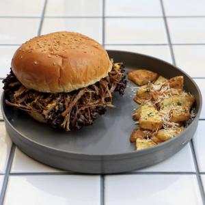 سس بادمجان - گوشت ریش شده - پیاز - موزارلا