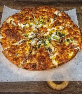 قارچ، فلفل دلمه، پیاز، گوجه فرنگی، ذرت، پنیر