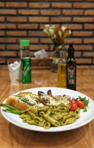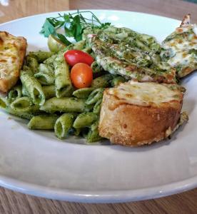پنه، مرغ، نان سیر، پنیر پارمیزان، سس پستو