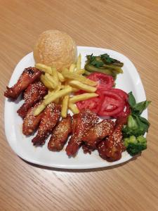 فیله گوشت، فیله مرغ، قارچ، فلفل دلمه، گوجه فرنگی، ذرت، پنیر