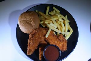 فیله سوخاری 4تکه،سیب زمینی سرخ شده،نان،سس مخصوص