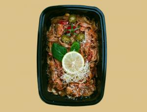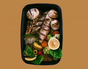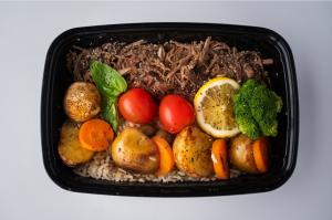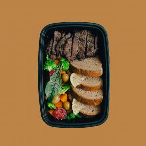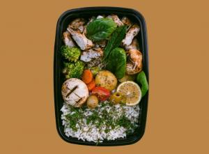 ۱۴۰ گرم گوشت رست شده/۲۵۰ گرم برنج قهوهای/سیب زمینی/بروکلی /هویج/قارچ/زیتون/لیمو/گوجه گیلاسی
