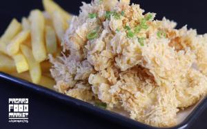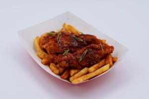4تکه فیله مرغ سوخاری با روکش ادویه تند+عسل+سیب زمینی سرخ شده+نان بریوش