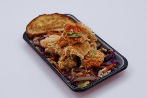 10تکه سینه مرغ سوخاری+سالاد کلم+نان بریوش