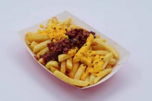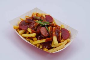 سیب زمینی سرخ شده+سوسیس و پپرونی+سس بوفالو