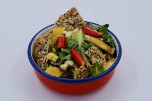 پنیر هالومی+میکس کاهو+سس هانی ماستارد+نان رژیمی+سالسا سیب+توت فرنگی+پرتقال