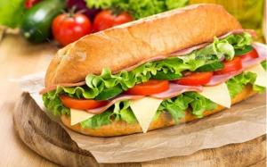 ژامبون مرغ،کاهو،گوجه،خیارشور،نان باگت،به همراه یک عدد سس