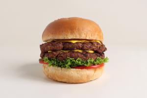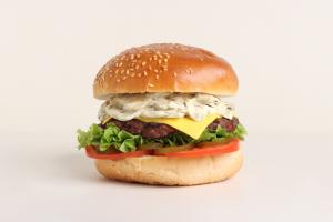 2 عدد برگر۱۸۰ گرمی گوشت گوساله +۲عدد پنیر گودا + کاهو فرانسوی+گوجه+خیارشور+نان کنجدی سحر+ یک عددسس کاسه ای دست ساز