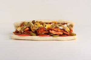 گوشت ریش شده گوساله+فیله مرغگریل+سسقارچ+پنیرپیتزا+پنیرگودا+کاهوگوجهخیارشور