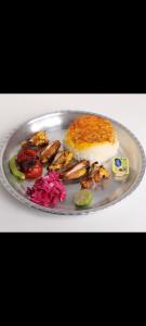 3سیخ کوبیده 95 گرمی مخلوط گوساله و گوسفندی،،300گرم کته ایرانی،،، دورچین:کلم ترشی و لیمو و فلفل کبابی،،،