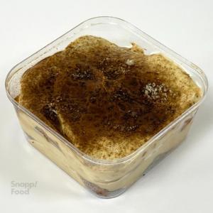 یک اسلایس کیک یک نفره، یک عدد، تیرامیسو کلاسیک، ترکیب کرم تیرامیسو، بیسکوئیت لیدی فینگر و نسکافه