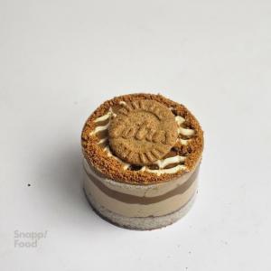 یک اسلایس کیک یک نفره، دسر لوتوس، یک دسر لایه ای از ترکیب کیک بادام و کرم و بیسکوئیت لوتوس است