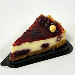 یک اسلایس کیک یک نفره، چیزکیک نیویورکی شاه توت، ترکیب فوق العاده خوشمزه ای از، کراست بیسکوئیتی، پنیر و مارمالاد شاه توت است