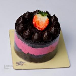 یک اسلایس کیک یک نفره، دسری فوق العاده خوشمزه با طعم ذغال اخته است که با کیک براونی و کرم شکلاتی ترکیب شده است