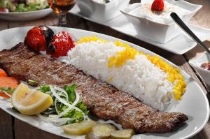 (۲۵۰ گرم فیله گوساله، برنج ایرانی درجه ۱) دورچین : (لیمو، پیاز ،فلفل.گوجه)